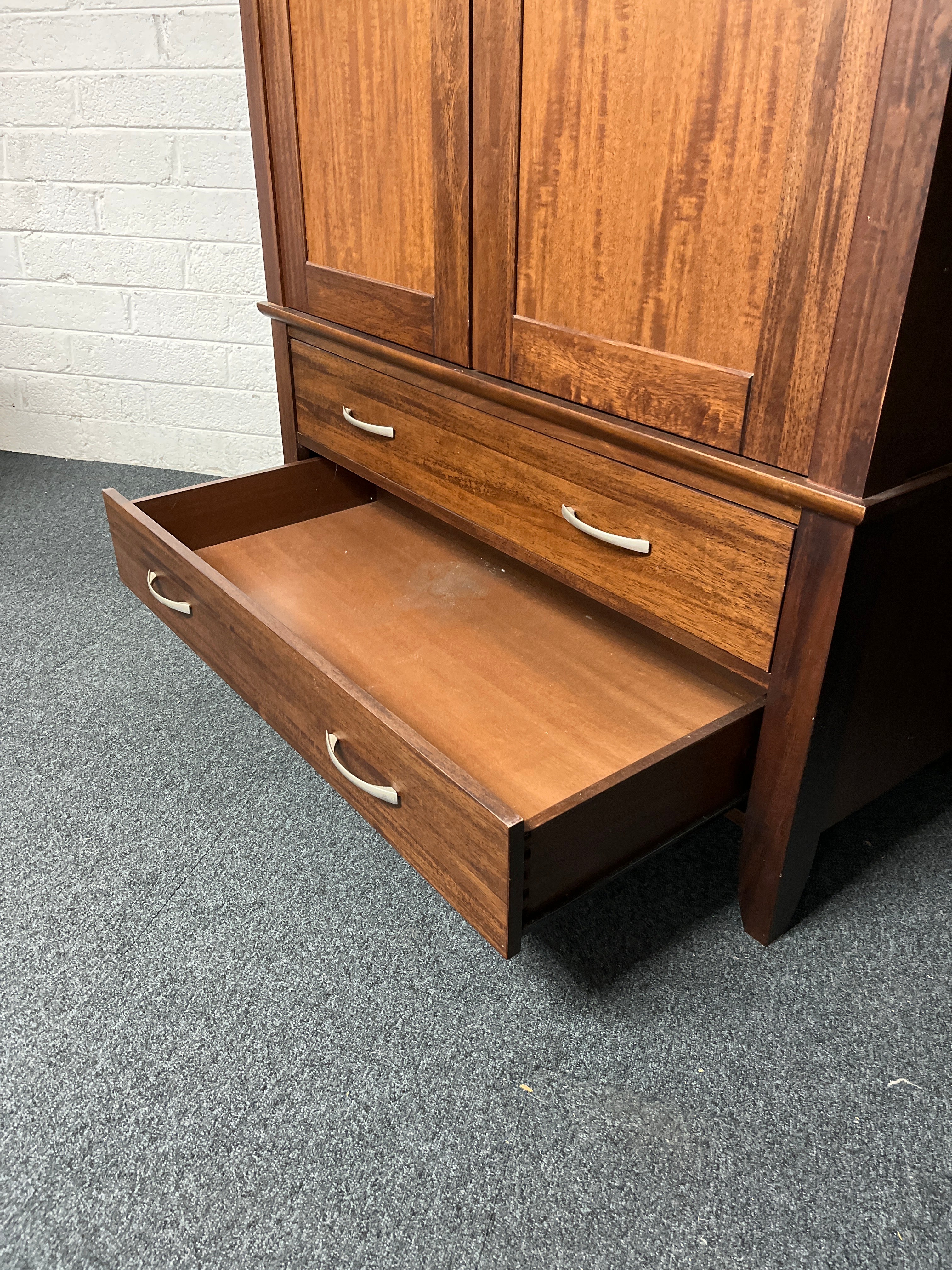 Tall solid wood stained 2 door 2 drawer wardrobe (H 2050 x W 1240 x D 660 mm)