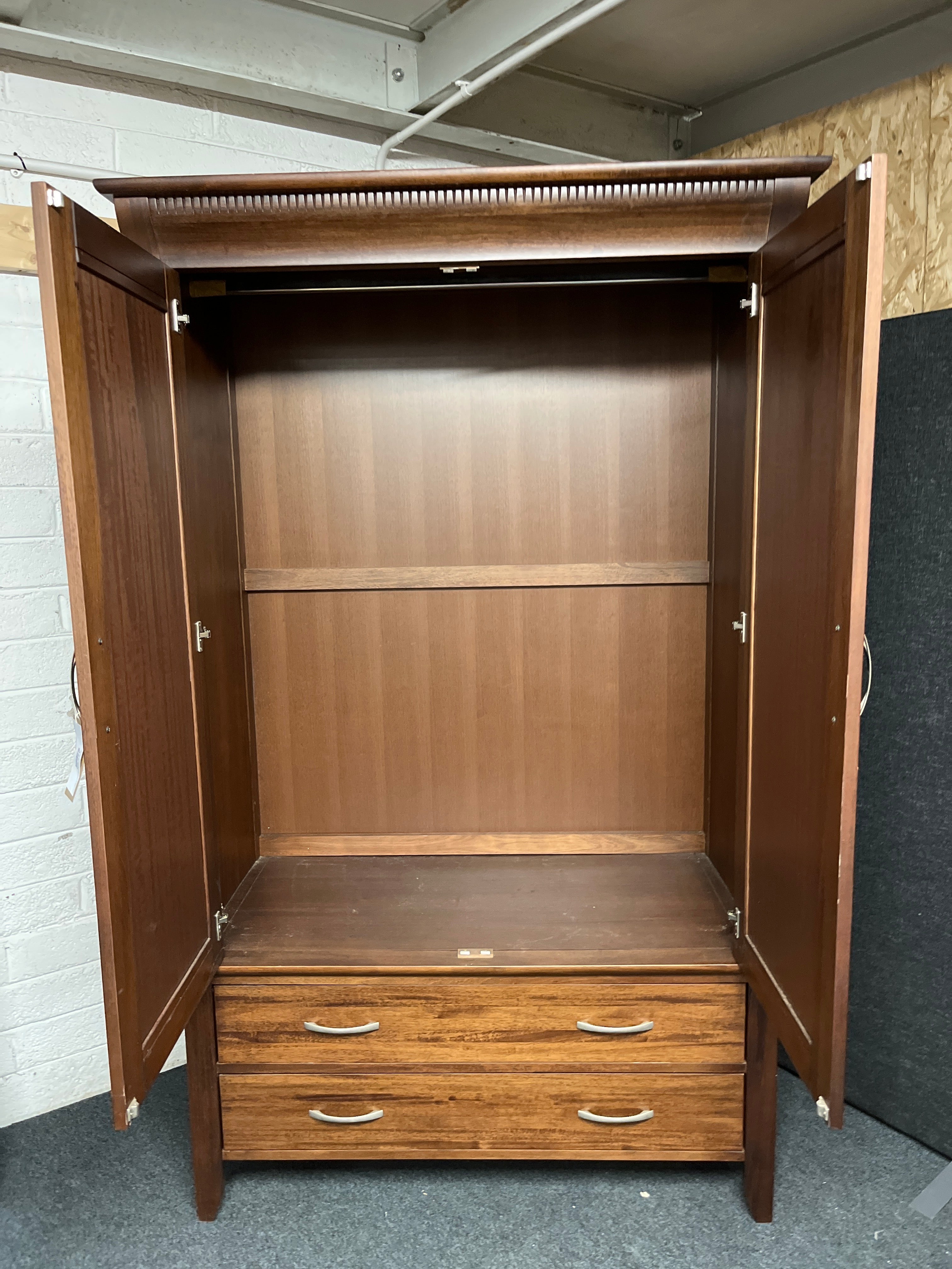 - Share: Tall solid wood stained 2 door 2 drawer wardrobe (H 2050 x W 1240 x D 660 mm) 1225