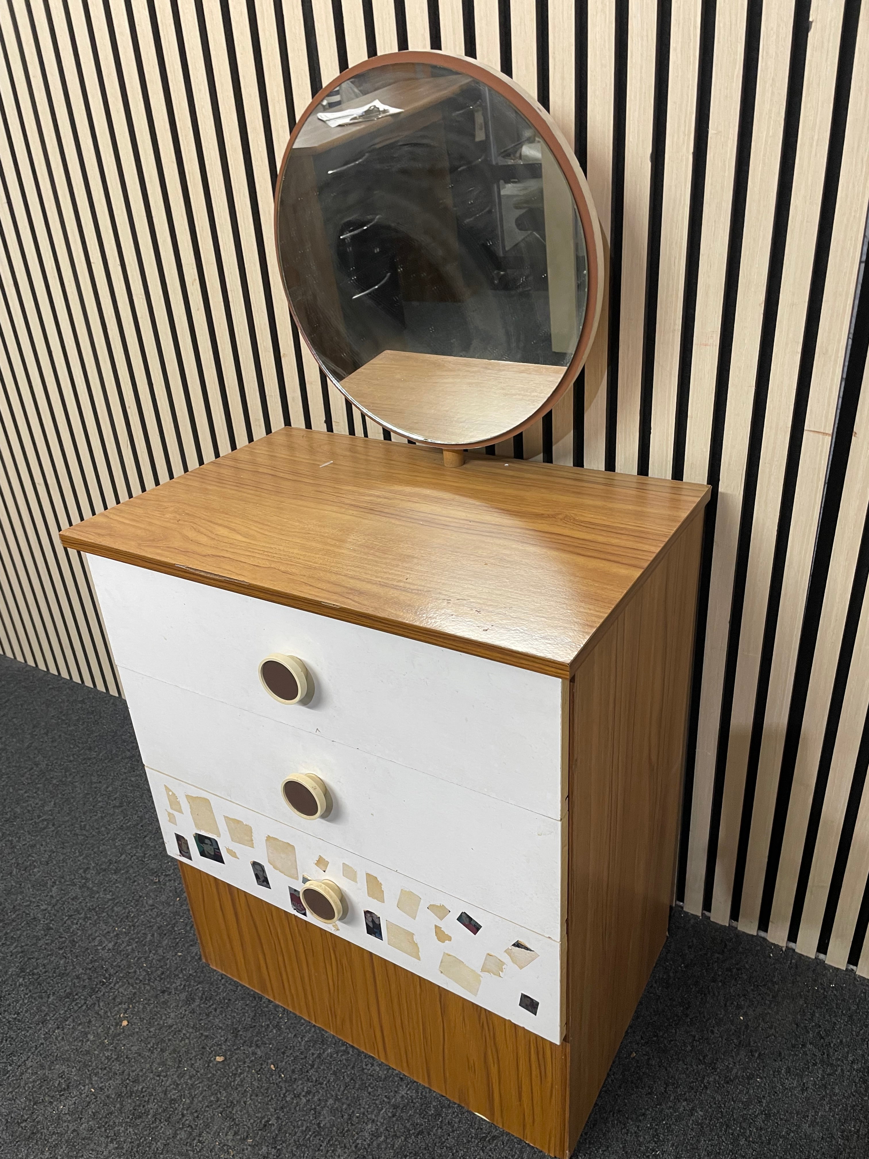 Teak and white laminate small 3 drawer chest with mirror