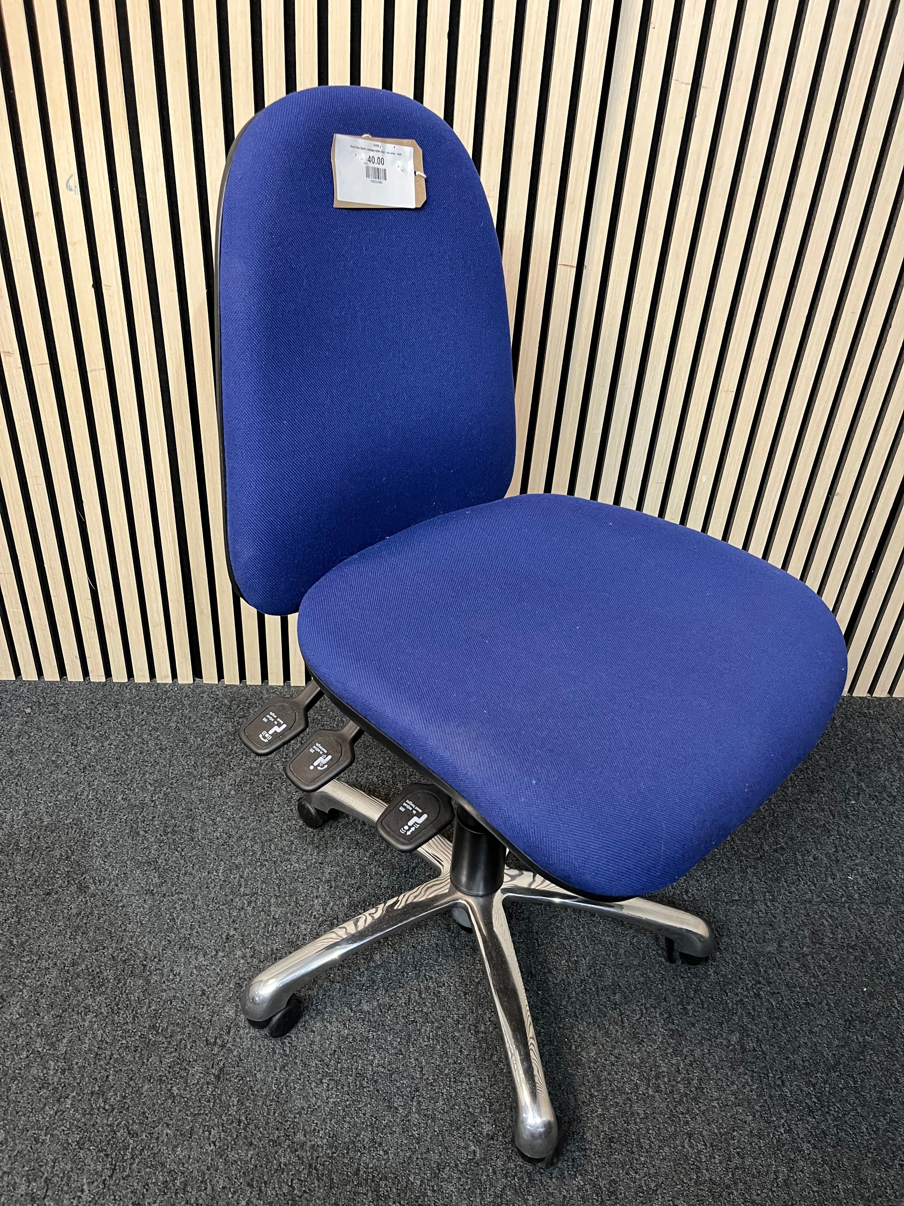 Used blue fabric vantage style chair - no arms