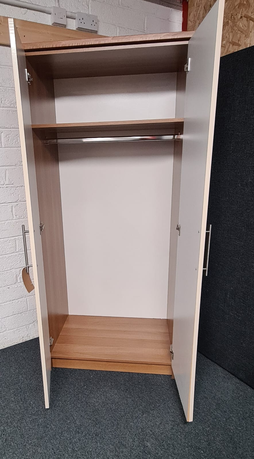 - Share: Walnut and white laminate 2 door wardrobe 1225