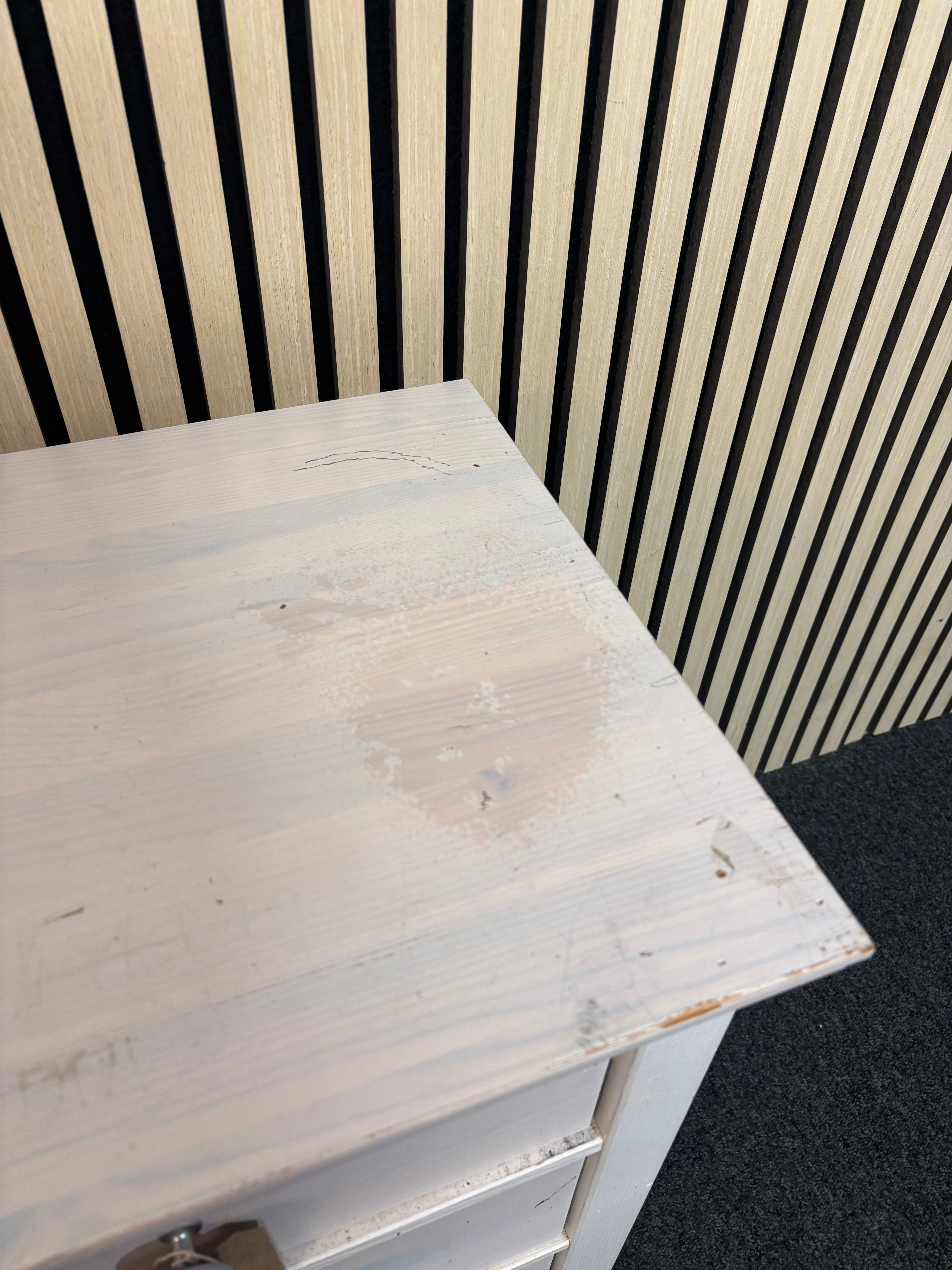 White painted wooden 3 drawer bedside locker with silver handles (H 64 x W 47 x D 37 cm) 2325