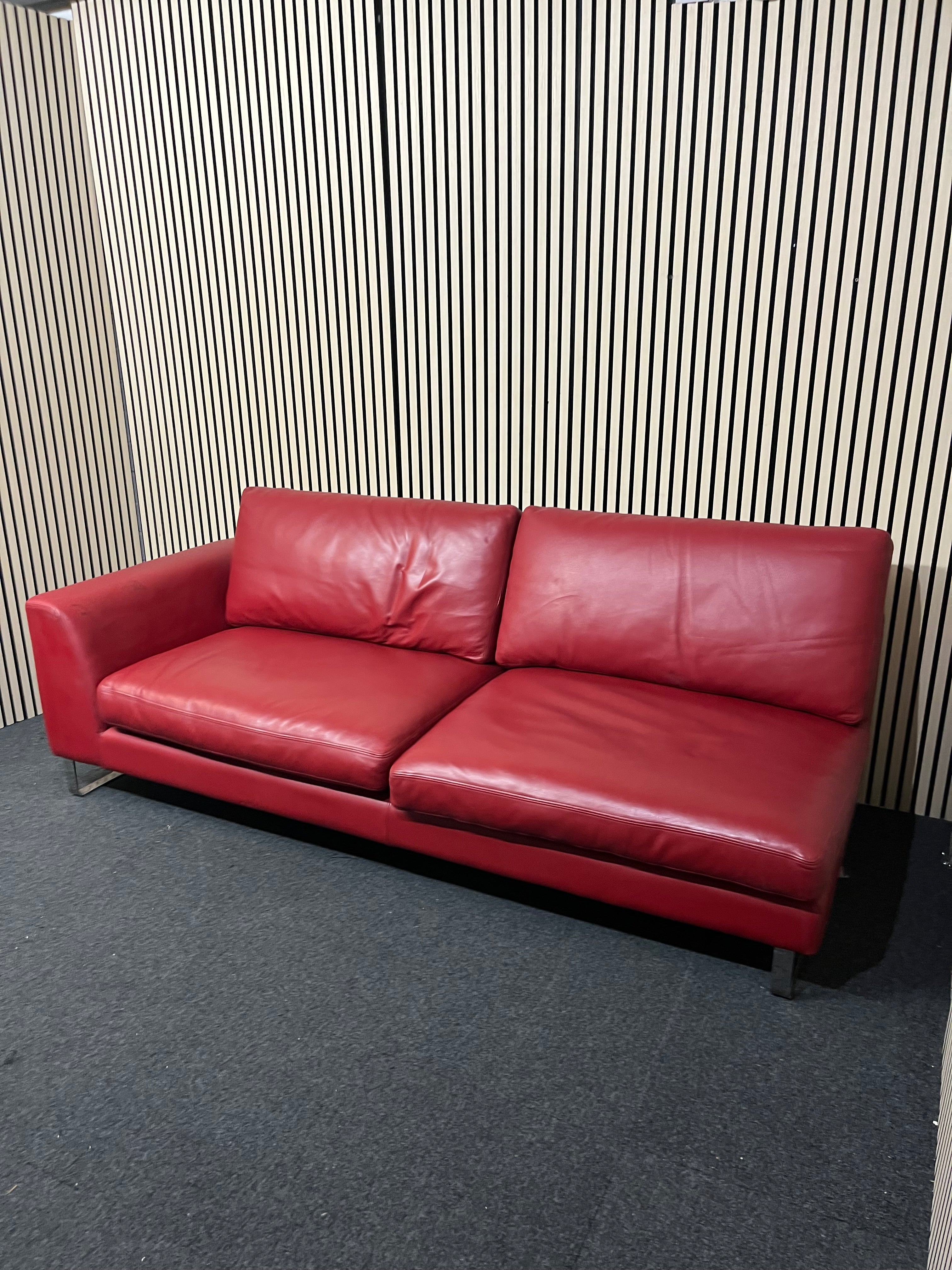 Wine leather single cornered 4 seater (Width 225 cm) (EX WINDMILL LANE STUDIO)